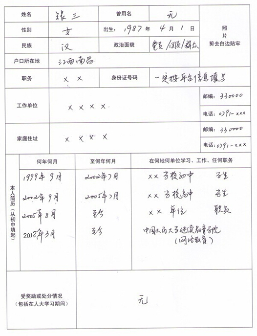 1、沒有的項目填寫“無”不得空項;如有工作單位,職務一欄就不能填寫“無”