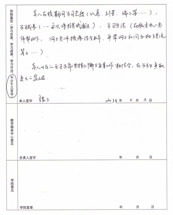 3、在《畢業生登記表》中需填寫“自我鑒定”(包括學習態度、學習成果、學習方法,不少于300字)及從初中開始的個人簡歷,請事先準備好。