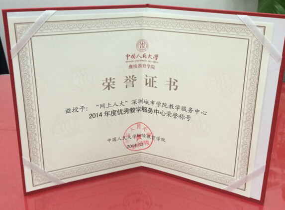 記網上人大深圳中心榮獲“2014優秀教學服務中心”稱號