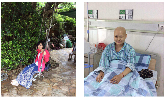 好久不見秋千架上眉眼俱笑的那個女孩了是嗎?沒錯,這兩張照片上是同一個人,她就是中國人民大學2013屆“圓夢計劃”本科班的趙春梅同學。這個來自廣西桂林的農家女孩,這個在老師和同學眼里聰慧好學、認真負責、富有才氣的女孩,這個深圳中心唯一一個榮獲2014年年度“網上人大之星”金獎榮譽的女孩,而今,正在病床上樂觀而又默默的面對生活中的一切。