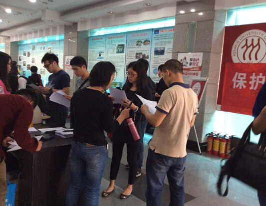 3月是人大公益活動月,恰逢2015年開年第一次大規模課程考試。網上人大深圳中心師生積極響應號召,發動新老同學一起組織了一場名為 “保護環境、愛護家園、從我做起”的環保簽名活動,并邀請了1309級圓夢計劃班的班委和熱心同學:劉澤純、陳超麗、趙春梅等到場為了參加本次課程考試和公益活動的同學們進行活動引導、協助發布活動表格,讓參加活動和考試的新同學們感受到了師兄師姐們的熱心幫忙和關懷。