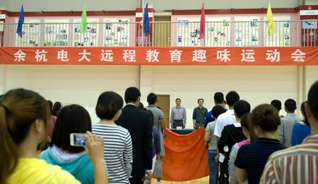 2012年10月27日上午,余杭電大遠(yuǎn)程教育首屆趣味運(yùn)動(dòng)會(huì)在校體藝館二樓順利舉行。近百名遠(yuǎn)程教育學(xué)員在班主任的組織下積極參與了此次趣味運(yùn)動(dòng)會(huì)。