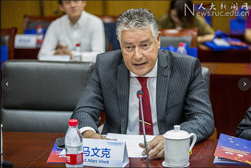 馬文克在致辭中表示,自2013年中比人文交流協會成立以來,比利時與中國在文化、教育、旅游、科學、體育和媒體等領域的交流與合作,促使了中比兩國人民加深彼此間的了解。未來中比將需繼續深化在人文交流方面的合作,尤其是在教育領域,相信中國人民大學人文交流研究中心也將扮演重要的角色。