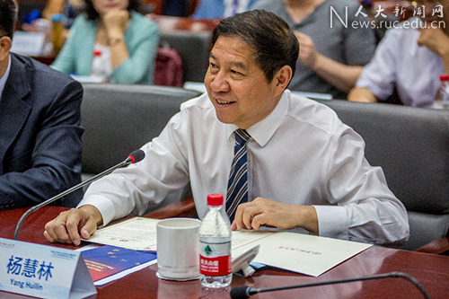 楊曉春強調了人文交流深化、發展中歐關系的重要性,并肯定了中國人民大學作為國家重點大學多年來在歐洲研究及人文交流領域所取得的成就。他對中國人民大學中歐人文交流中心提出了兩點希望:一是中心充分發揮智庫作用,為中國和歐盟雙方深化人文交流提供政策咨詢,暢通渠道,消除障礙,切實促進中歐互學互鑒,增進了解,民心相通。二是中心發揮人文交流教育功能,不斷提升中國公民開展人文交流的水平和能力,促進歐洲民眾不帶偏見地了解中國, 夯實中歐戰略伙伴關系發展社會和民意基礎。