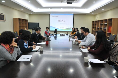 2014年11月25日上午9點30,網(wǎng)上人大院長顧宗連,副院長岳俊芳在三號會議室接待了來自于東北財經(jīng)大學(xué)網(wǎng)絡(luò)教育學(xué)院宋晶院長一行8人,并與來賓們一起分享了中國人民大學(xué)網(wǎng)絡(luò)教育的發(fā)展歷程。
