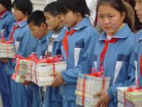 加祥縣紙坊鎮(zhèn)第二中學位于青山北麓、洙水之畔,這里風光優(yōu)美、環(huán)境整潔有致,這里是附近十里八鄉(xiāng)普及 9 年制初中教育的學校。全校有 16 個教學班,共有學生 1236 人,教職工 62 人。在山東省及濟寧市前幾年實施的校舍改造工程之后,學校的硬件設(shè)施有了很大的提高,建有標準的辦公綜合樓、學生公寓樓,但學校的課桌、書籍等軟件設(shè)施同城市學校相比仍有一定的差距。網(wǎng)上人大濟寧教學服務(wù)中心選定加祥縣紙坊鎮(zhèn)二中進行捐書公益活動,對全校師生來說真是雪中送炭,雨中送傘,也受到了紙坊鎮(zhèn)二中師生們的熱烈歡迎。學校領(lǐng)導格外重視網(wǎng)上人大的這次捐贈活動,專門安排了學生鼓樂隊鑼鼓喧天地夾道歡迎,并會同全校師生舉行了一個隆重而又簡潔的受贈儀式。