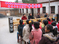 捐贈儀式開始,首先是鞏義市大峪溝鎮三官廟村主任致歡迎詞,接著是鞏義市大峪溝鎮三官廟小學校長講話,然后由中國人民大學網絡教育學院鄭州電大教學部陳為民主任發表了熱情的演講,在演講中,陳主任表達了全體師生對于鞏義市大峪溝鎮三官廟小學的真切感情。接著,中國人民大學網絡教育學院學生張衛民代表我們——網院學生把凝聚著一片愛心的捐贈品送上主席臺并發言,他說:我代表全體同學,祝愿學生們能珍惜美好的童年生活,好好學習,天天向上,發憤圖強,將來為山村的建設貢獻自己的力量。最后,鞏義市大峪溝鎮三官廟小學六年級學生來元源代表小學全體學生接受了捐贈,并表示要刻苦學習,不辜負大家的愛心,用優異成績回報社會的關愛與幫助,他的話樸實真切,令我們非常感動。