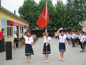 | 先隊員們用莊嚴的出旗儀式迎接六一兒童節的到來 |
