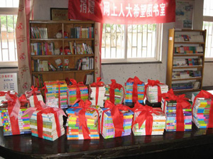 捐贈的書籍擺滿了網上人大希望圖書室 |